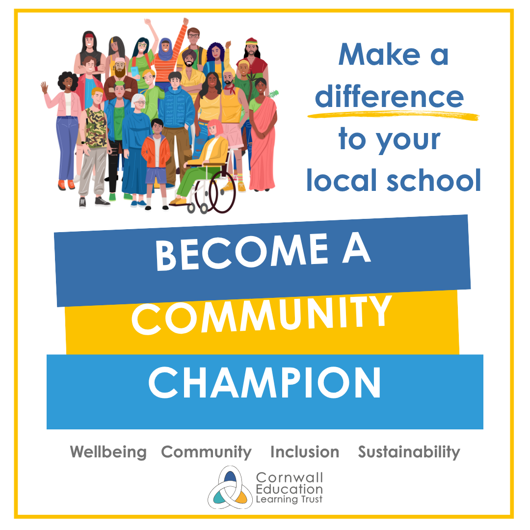 Community champions are volunteers who support a local school with key aspects like wellbeing, community links or inclusion. Volunteers will represent the views of children, families staff and communities.