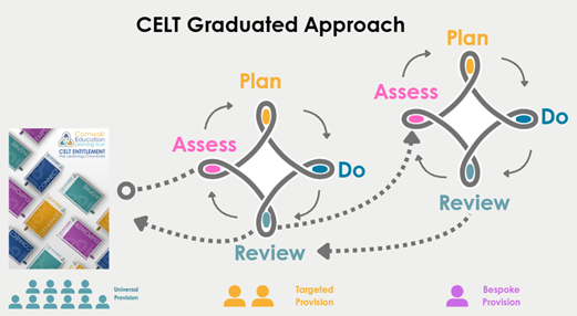 This is a four-part cycle (assess – plan – do – review) outlined in the SEN Code of Practice (2015), through which earlier decisions and actions are revisited, refined and revised with a growing understanding of the learner’s needs and of what supports the learners in making good progress and securing good outcomes.
